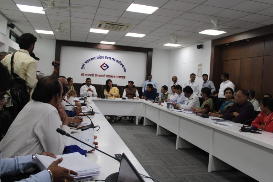 यानंतर पुणे महानगर प्रदेश विकास प्राधिकरण (PMRDA) मुख्यालय, आकुर्डी येथे आयोजित बैठकीत सुरू असलेल्या विकास प्रकल्पांचा सविस्तर आढावा घेण्यात आला. यावेळी मंत्री पंकजा मुंडे यांनी संबंधित यंत्रणांना पर्यावरणीय संतुलन राखत विकासकामांना गती देण्याच्या सूचना दिल्या.