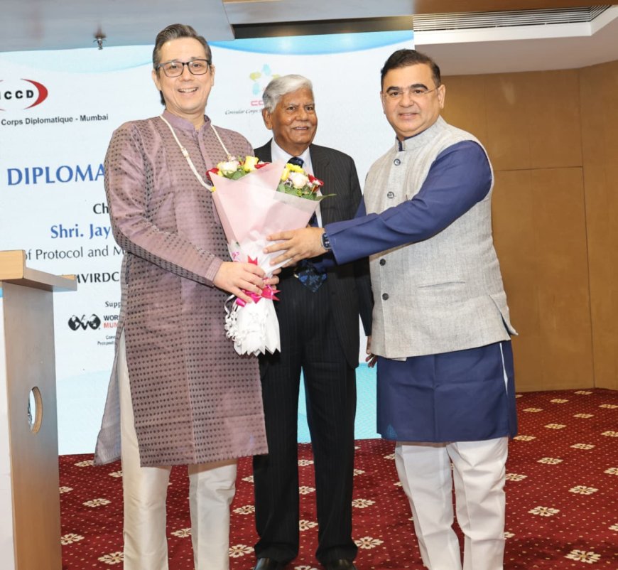 याच दिवशी जागतिक व्यापार केंद्र येथे आयोजित कार्यक्रमात ‘कौन्सिल ऑफ कॉर्प्स असोसिएशन ऑफ मुंबई’च्या नव्या नेतृत्वाचा सत्कार करण्यात आला. स्वीडनचे महावाणिज्यदूत स्वेन ऑस्टबर्ग यांची डीन म्हणून नियुक्ती झाल्याबद्दल मंत्री जयकुमार रावल यांच्या हस्ते त्यांचा गौरव करण्यात आला.