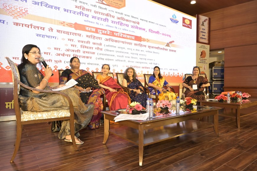 नवी दिल्ली येथे आयोजित मराठी साहित्य संमेलनात महिला अधिकाऱ्यांनी नोकरीतील शिस्त आणि सर्जनशीलतेचा समतोल यावर अनुभव मांडले. प्रेरणादायी परिसंवादाला उत्स्फूर्त प्रतिसाद.